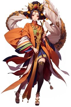 (masterpiece:1.3),(the best quality:1.2),(super fine illustrations:1.2),(Masterpiece),high quality,high detail,(white background:1.2),looking at viewer,(SOLO:1.4),outline,simple background,, black hair,jilin,holding weapon,long sleeves,chinese clothes,sword,thighhighs,weapon,brown eyes,headdress,crown,hair ornament,long hair,bracelet,jewelry,wide sleeves,