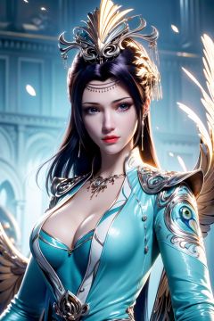 (Hyper Real), (illustration), (high resolution), (8K), (Very detailed), (Best Illustration), (Beautiful detailed eyes), (Best quality), (Super detailed), (Masterpiece), (the wallpaper), (Detailed face), Solo, (Dynamic pose), 1girl,jewelry,wings,dress,crystal,Peacock feathers,1 girl,yuyao,xwhd,(upper body),huliya,dzn-hd,yf-hd,