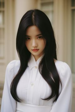 1girl,black_hair,Balenciaga model,looking at viewer,pale skin,blurry_background,realistic,solo,upper_body,,