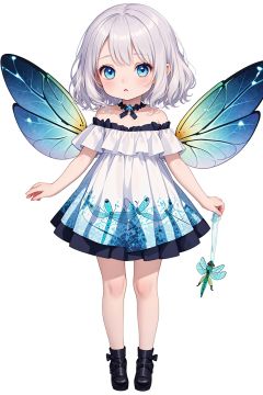 (little loli:1.3), (child:1.2), (Girlish body type), (masterpiece), Exquisite visuals, high-definition, (ultra detailed), finely detail, ((solo)), ((gawr gura)), (medium hair), (white Silver hair), (gradient Blue), (beautiful detailed eyes), Kawai, loveliness, off shoulder, looking at viewer, bare shoulders, standing, ((full body)), pale skin, Best Quality (Dragonfly Wings: 1.5)