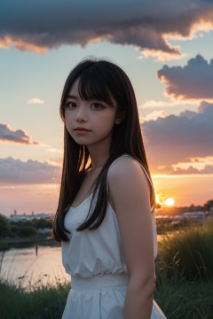 1Beautiful girl, highly detailed, High-definition raw color photos, professional photograpy, Realistic portrait, teenager, Outdoors, beautiful sunset,53yfp