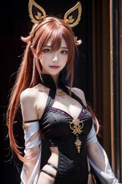 (Good anatomical structure), HDR, UHD, 8K, A real person, Highly detailed, best quality, masterpiece, 1girl, realistic, Highly detailed, (EOS R8, 50mm, F1.2, 8K, RAW photo:1.2), ultra realistic 8k ,bachongshenzi, 1girl, yae miko, solo, pink hair, purple eyes, long hair, looking at viewer, hair between eyes, jewelry, animal ears, japanese clothes, fox ears, upper body, bare shoulders, bangs, detached sleeves, earrings, closed mouth, smile, hair ornament