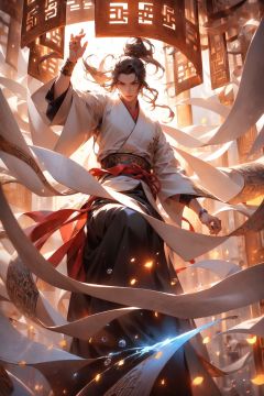 A girl dressed in an ancient mage uniform, Hanfu, handsome, with gestures forming spells, martial arts and fairy tale atmosphere, carrying a sky filled with water vapor, game characters, water waves, surrounded by rotating transparent long scrolls, vertically displaying Chinese characters, magical realism, dynamic action style, magical formation, the highest quality, masterpiece, cg, hdr, high-definition, ultimate details, detail face, superhero, hero, detail ultra high-definition, VFX, 3D rendering,