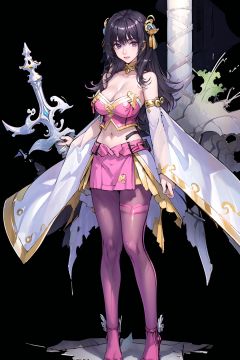 (ultra high res), (masterpiece), (best quality), (official art), (extremely detailed CG unity 8k wallpaper), (perfect body),  (1 girl),  cute girl, beautiful detailed hair,  beautiful detailed eyes, classic,  (painting),  (sketch), (CG), (best illumination,  best shadow, an extremely delicate and beautiful), ultra-detailed, remely delicate and beautiful girls, (large_breasts:1), 1girl,full_body, jianyaoling,jianyaoling,black_hair,(pink_pantyhose:1.2),black_eyes,navel,(pink legwear:1.2),(pink_thighhighs:1.2),(large_breasts:1.2),