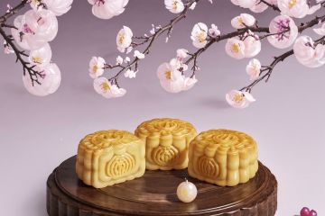 real, Moon Cake, Transparent moon cake, Exquisite, Aesthetic, Publicity poster, Branch, Plum blossom, Table, masterpiece, ccurate, high details, HD