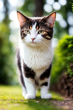 A cute cat,fluffy fur,adorable active eyes,playful paws,cosy sleeping spot,soft whiskers,beautiful patterned coat,bright and expressive eyes,curious and playful nature,smooth and sleek body,graceful and agile movements,[cat toys],[green garden background],[colorful sunlight filtering through the trees],[vibrant and cheerful atmosphere],(best quality,ultra-detailed),[soft lighting],realistic colors, [bokeh]