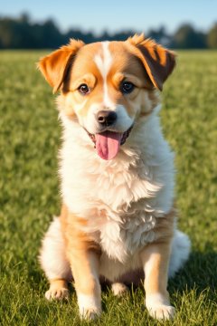 (best quality,4k,8k,highres,masterpiece:1.2),ultra-detailed,(realistic,photorealistic,photo-realistic:1.37),dog,pet,adorable,cute,lively,friendly,playful,doggy eyes,fluffy fur,happy expression,small size,curled tail,pointy ears,puppy,paws,snout,puppy breath,chubby cheeks,wagging tail,soft nose,puppy love,warm-hearted,loyal companion,joyful,fun-loving,running in the meadow,grass,beautiful sunny day,family pet,symbol of happiness,portrait style,vivid colors,shades of brown,bokeh lighting.