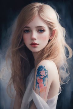 (8k, best quality, masterpiece:1.2),(best quality:1.0), (ultra highres:1.0), watercolor, a beautiful woman, shoulder, hair ribbons, by agnes cecile, half body portrait, extremely luminous bright design, pastel colors, (ink:1.3), autumn lights, watercolor
