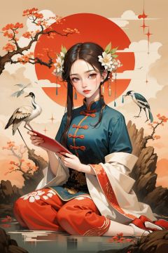 <lora:鹤仙:0.8>,chinese ink painting style,1girl,