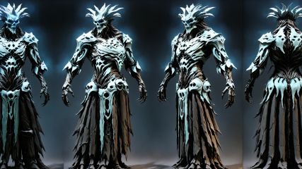 (Multi-view image :1.5) Advanced colors, complex details, (Multi-view :1.5) (Ghost Giant: Humanoid high form ghostly monster that can hide and move through purpose, has the ability to suck life forces)(Thick art style game cg), (very detailed), 4K, beautiful and aesthetic masterpiece, best quality, end-of-the-world novel,