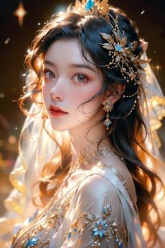 masterpiece,best quality,ultra-detailed,hyperdetailed painting,dynamic pose,(see-through colorful cloth:1),(a sparkling girl:1.4),orange girl,(portrait:1.1),pretty face,((extremely delicate and beautiful girls)),dynamic angle,(detailed light),glowing eyes,ruby right eye,enchanting eyes,ruby left eye,(detailed glow),(fractal art:1.1),( chiaroscuro,Fujicolor, UHD, super detail ,raw,85mm,f/1.2,FujifilmXT4,),tullece,