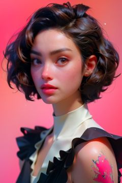 a girl,solo, ((photorealistic::1.4),masterpiece,best quality,highres,Extreme detaildelicate face,Extreme detaildelicate eyes,face alignment,fair complexion,Exquisite hairstyle,Pink lips.Strong sense of detail and layer,rich and gorgeous color,with a unique sense of texture,Rich color,color harmony,vivid painting,design,16k,hyper detailed,abstractionism,indoors,Short hair,full_body,nichakarn-methmutha