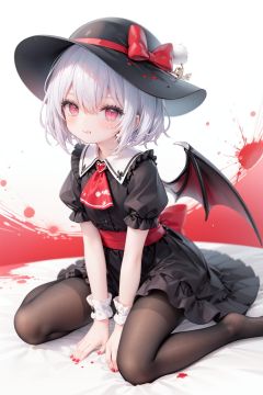 (little girl:1.4), (child:1.4),(petite:1.4), (loli:1.4),,,((solo:1.3)).,1girl, solo, wings, red eyes, hat, remilia scarlet, red background, mob cap, bat wings, ascot, blood, short sleeves, bow, short hair, ribbon, blood on hands, looking at viewer, simple background, full body, puffy sleeves, hat ribbon, blood on face, dress, brooch, red nails, pantyhose, red bow, puffy short sleeves, smile, black pantyhose, wrist cuffs, red ribbon, sitting, jewelry, red ascot, frills, hair between eyes, skirt, white dress, fingernails, sash, shirt, nail polish, no shoes, red theme, sharp fingernails, bangs, tongue, hat bow, grey hair, closed mouth, tongue out, white headwear, slit pupils, blood on clothes, skirt set, hand up, frilled sleeves, invisible chair, white skirt, vampire, frilled shirt collar/.,\nSolo,Battle, {{{{{Slash}}}}},Killing,Attacker,{{Fierce movement}},Ninja,Bloodstain,Core shadow,splatter,{Blood},{{{{Battle scene}}}},angry,Intricate,,{{{Dynamic angle}}},{Stylish pose},{High contrast,Extremely detailed CG unity 8K wallpaper} Sense of movement,blurry background,Kaotic,Lunatic,[[[[[hyper paint, rough design, flat color]]]]],Grin,Whole body,Colorful background,Intricate,Girl wearing black suit,Looking at viewers,{{Stylish}},Persona 5 style art,{{{all out attack(persona 5)}}}