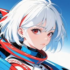 minimalism,detailed beautiful face, blue and red, solo,white hair, 1girl, looking at viewer, simple background,very short straight hair,strong contrast,ear piercing,Racing suit,strong contrast,emotional impact,anime,best light,best shadow,illustration,vibrant color,