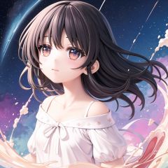 (hyper detail:1.1), looking at viewer, (from above:1.3), (Fisheye lens:0.8), detailed beautiful eyes, (1girl:1.1), (talking head:1.2), (close-up:1.2), face focus, hair spread out, looking away, red eyes, gradient hair, (black hair, red highlights:1.2), bangs, collarbone, (medium hair:1.3), (puffy_short_sleeves:1.1), collarbone, (swirling:1.2), kawaii, (dynamic light:1.2), cinematic light, (floating hair:1.2), wind, (light particles:1.1), (glowing clouds:1.1), glowing red eyes, (colorful:1.1), (starry sky:1.2), (pastel colors:1.4), (watercolor:1), (flowing petals:0.8), universe, comet, (night sky, vibrant nebula sky)