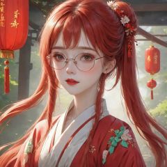 4K, HD,, best quality,masterpiece, official art, ultra high res, 1girl, chinese clothes, hanfu, solo,red hair,twin braids,over-rim eyewear,licking lips,