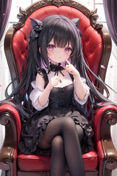 masterpiece, ((best quality)), (ultra-detailed), (illustration), an extremely delicate and beautiful girl, dynamic angle, chromatic aberration, ((colorful)),//,1girls,loli,(petite child:1.1),//,(in Gothic castle),girl with black hair,red eyes,Vertical pupil,long hair,hair arrangement,(Detailed face description),(batwing),(Gothic Lolita),(bat tail),alccandlestick,Cathedral glass,,short skirt,black pantyhose,red lace,high heels,rose tattoo,throne,sitting,crossed legs,//,