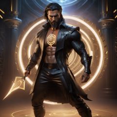 realistic, ((masterpiece)), ((best quality)), (detailed), cinematic, dynamic lighting, soft shadow, detailed background, professional photography, depth of field, intricate, detailed face, subsurface scattering, realistic hair, realistic eyes, muscular, manly, pectorals, abs, photo of a handsome man, cyberwizard, magic circle, casting spell, cyberpunk, science fiction, magic, full body, dynamic pose, fighting stance, magic circle in background, dynamic angle, glowing, beard