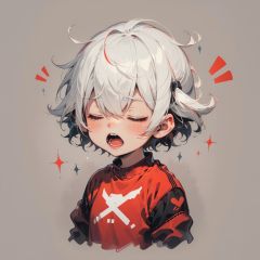 solo, yawn, blush, open_mouth, bangs, simple_background, shirt, long_sleeves, 1boy, hair_between_eyes, closed_eyes, upper_body, white_hair, male_focus, teeth, fang, virtual_youtuber, grey_background, chibi, red_shirt, facing_viewer, brown_background, cropped_torso, notice_lines, male_child, layered_sleeves, BJ_Imp,cinematic lighting,strong contrast,high level of detail,Best quality,masterpiece,White background,<lora:little_devil_emoji:0.7>,