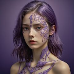 1girl in, surrealism, Verism, Anatomically correct, Textured skin, masuter piece, high details, awardwinning, hight resolution, 8K,Unevenness of the skin,20yr old, purple backgroud,FilmGirl