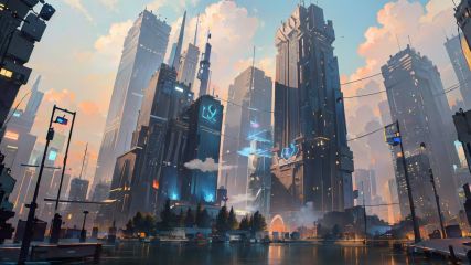 Cyberpunk Concept, no humans, building, city, sky, scenery, cloud, outdoors, skyscraper, smoke, cloudy sky, night, cityscape, aircraft