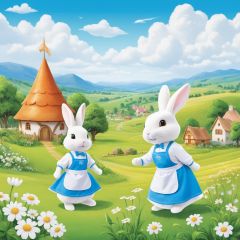 masterpiece, Little bunny and mother rabbit, Apron, Village, During the day, Clouds, Grassland, White flower, An outing, Fairy tale world, Flying elves