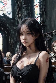 cinematic lighting, ((best quality)),((single_human_girl)),((((upper_body)))),((extremely_detailed_eyes_and_face)),((church)),((annoyed)),((ink)),((illustration)),depth of field,((frown)),((expression)),((red_eyes)),((((white_hair)))),((extremely detailed)),((watercolor)),((anime face)),(skull_on_dress),(((yokozuwari))),((detailed_skeleton_church)),(((beautiful_detailed_black_gothic_Empire_Waist_Dress))),(((dramatic_angle))),medium_breast,(8k_wallpaper),((bright_eyes)), (looking_at_viewers),((close_to_viewers)),((masterpiece)),(((((messy_long_hair))))),((((1girl)))),lens_flare,light_leaks