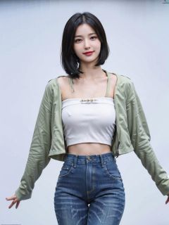 A girl about 20 years old, simple, extremely beautiful and delicate, (light makeup), brown hair, sweet smile, delicate and beautiful white skin, realistic, delicate and complete facial features, detailed facial depiction, high nose bridge, red lips, beautiful and gentle beautiful girl, fluffy and smooth hair, extremely delicate hair, soft temperament, facial touch-up, super realistic, realistic, realistic, 8K picture quality, extreme details, realistic details, master works, lifelike perfection, figure, beauty, purity, stunning beauty, peerless beauty, highest picture quality, 8k resolution, goddess, smile, fine facial features, hair over shoulder, brown hair, long and thick legs,(((high waist French jacket))),(((high waist straight jeans))), sunshine, facing the camera, well-proportioned and tight, gentle eyes, revealing thighs, standing posture, walking on the street, stockings, full body photo