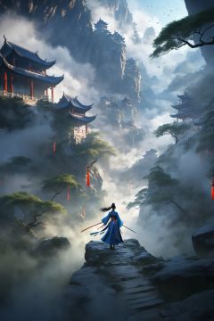 Ancient China, Wuxia World, Black Through the Cave, surrounded by mist, vast panorama, Unreal light and shadow, wide Angle lens, captured at dusk, cinematic texture, Unreal Engine 4, 8K Ultra HD, clear and bright image quality, amazing fantasy immortal scenes, ink painting style, highly refined, dynamic expression, clear lines, cinematic texture, cool atmosphere, Vivid, high octane rendering, extremely fine,wujie,wanjianguizong,xiamap