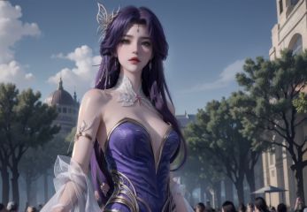 masterpiece,best quality,(shiny hair:1.4),colorful,(shiny skin:1.5),exquisite skin texture,1girl, purple_hair, purple_eyes, purple clothes, long_hair, earrings, butterfly_hair_ornament, jewelry, blue_butterfly, hair_ornament, outdoors, <lora:云曦-000013:0.65>