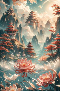 The realm of the sky, During the day, Red, romantic, masterpiece, HD,guochao,shuixia
