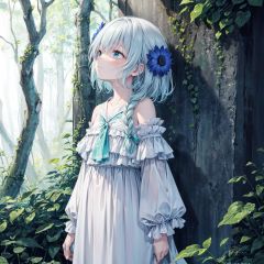 light rain,dark,(((Cornflower))), cornflower, cornflower,vines, forest, ruins, Blurred picture, lens flare, hdr, Tyndall effect,damp,wet,