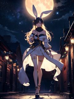 masterpiece,(ultra detailed:1.3),best quality,Mid-Autumn Festival, 1girl,Real human hands, hand details, five fingers,(full body:1.7), (Slim body:1.1),(long legs:1.3),solo focus,1girl,solo,jewelry,very long hair,hair ornament,earrings,black hair,facial mark,wind,mole under eye,bracelet,beads,scarf ,tattoo,braid,braids,floating hair,black eyes,,colorful,cinematic lighting,(sparkle:1.2),(photorealistic:1.4),(cinematic_angle:1.3),unity 8k wallpaper,(the huge moon behind the body:1.3),(starry sky:1.3),lotus pedestal,(lens flare:1.1),(white fluffy giant rabbit:1.3),(starish:1.3),(starrynebula:1.2),looking at viewer,the corridor of the palace,(off shoulder:1.2),(festiveMidAutumnsetting:1.2),looking at viewer,(ultra detailed:1.3),(sophisticatedarchitecture),(illumination effect with a dreamy feeling:1.2),(texturedfabrics),(detached sleeves:1.1),