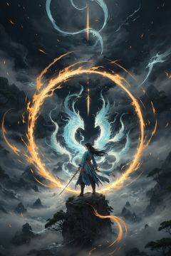 Ancient China, Wuxia World, Thousands of Swords, Flying Sword, Black through the Hole, surrounded by mist, vast panorama, Unreal light and shadow, wide Angle lens, captured at dusk, cinematic texture, Unreal Engine 4, 8K Ultra HD, clear and bright image quality, amazing fantasy immortal scenes, ink painting style, highly refined, dynamic expression, clear lines, cinematic texture, Cold atmosphere, vivid, render high octane, extremely fine,wujie,wanjianguizong,jianjue,11