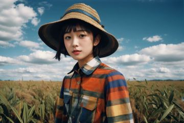 jiPortrait,1girl,field,striped shirt,sweater,hat,collared shirt,<lora:jiPortarit V1.0:0.9>,