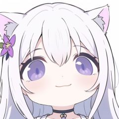 zhubi_bighead,cleavage,(cat ears),1girl,solo,looking at viewer,flower,white bikini,long hair,bangs,closed mouth,simple background,white background,white hair,hair intakes,purple eyes,expressionless,eyelashes,best quality,smile,White cat ears,<lora:big_face:0.7>,