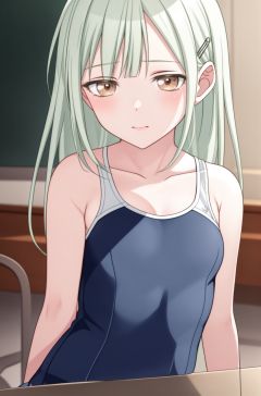 half-closed eye,hairpin,masterpiece, best quality, (((small breasts))),school swimsuit