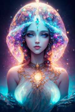 ((best quality)), ((masterpiece)), ((realistic)), portrait,1girl, celestial, deity, goddess, light particles, halo, looking at viewer,(bioluminescent:0.95) ocean, bioluminescent, vibrant, colourful, color, (glowing, glow),(beautiful composition), cinematic lighting, intricate, (symmetrical:0.5), whimsical,<lora:ButterflyX_v26:0.85>
