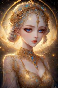 ((best quality)), ((masterpiece)), ((realistic)), portrait,1girl, celestial, deity, goddess, light particles, halo, looking at viewer,(bioluminescent:0.95) ocean, bioluminescent, vibrant, colourful, color, (glowing, glow),(beautiful composition), cinematic lighting, intricate, (symmetrical:0.5), whimsical,<lora:ButterflyX_v26:0.85> <lora:yuantu:0.5>