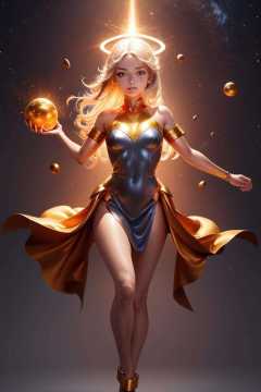 ((best quality)),((masterpiece)), 1girl, animated, full body, celestial,deity,goddess,light particles,halo,looking at viewer,Resolute eyes,bare shoulders,Float in universe, starry sky,meteor crater, on Mars,Meteoric swarm,<lora:icons-GoBk-000006:1.2>,