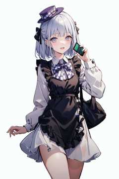 outfit-blackkitty, 1girl,  solo, cowboy shot,mini hat, white background, simple background, phone <lora:char-hanako:0> <lora:outfit-black_kitty's_giftV2:0> <lora:outfit-black_kitty's_giftV2-000008:1> <lora:char-rpk16:1>