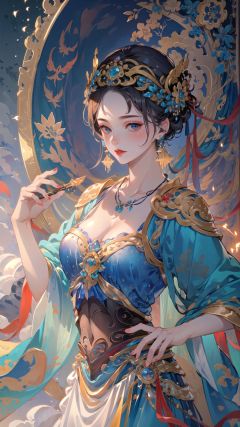 qiuyinong, myth,fairy,1girl, jewelry, solo, earrings, necklace, red lips, black hair, makeup, upper body, hair ornament, looking at viewer, chinese clothes, lipstick