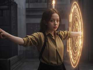masterpiece,realistic,1girl is holding a magic shield, <lora:magic_v3beta:0.55>,