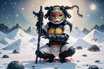 best quality,masterpiece,colorful,dynamic angle,highest detailed,<lora:Ninjaturtle-000010:1>,(ninja turtle:1.3),(weapon:1.2),(white clothes:1.3),moon background,(kneel on one knee:1.3),