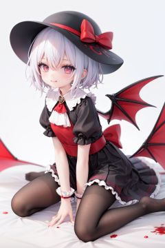 (little girl:1.4), (child:1.4),(petite:1.4), (loli:1.4),,,((solo:1.3)).,1girl, solo, wings, red eyes, hat, remilia scarlet, red background, mob cap, bat wings, ascot, blood, short sleeves, bow, short hair, ribbon, blood on hands, looking at viewer, simple background, full body, puffy sleeves, hat ribbon, blood on face, dress, brooch, red nails, pantyhose, red bow, puffy short sleeves, smile, black pantyhose, wrist cuffs, red ribbon, sitting, jewelry, red ascot, frills, hair between eyes, skirt, white dress, fingernails, sash, shirt, nail polish, no shoes, red theme, sharp fingernails, bangs, tongue, hat bow, grey hair, closed mouth, tongue out, white headwear, slit pupils, blood on clothes, skirt set, hand up, frilled sleeves, invisible chair, white skirt, vampire, frilled shirt collar/.,\nSolo,Battle, {{{{{Slash}}}}},Killing,Attacker,{{Fierce movement}},Ninja,Bloodstain,Core shadow,splatter,{Blood},{{{{Battle scene}}}},angry,Intricate,,{{{Dynamic angle}}},{Stylish pose},{High contrast,Extremely detailed CG unity 8K wallpaper} Sense of movement,blurry background,Kaotic,Lunatic,[[[[[hyper paint, rough design, flat color]]]]],Grin,Whole body,Colorful background,Intricate,Girl wearing black suit,Looking at viewers,{{Stylish}},Persona 5 style art,{{{all out attack(persona 5)}}}