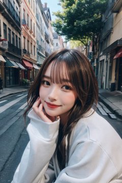 A glamour portrait photo,  outside the street,  shot by sony a7 mark iii,  85mm,  hdr, vivid color,,mm_runa