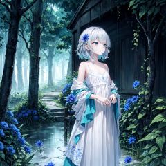 light rain,dark,(((Cornflower))), cornflower, cornflower,vines, forest, ruins, Blurred picture, lens flare, hdr, Tyndall effect,damp,wet,