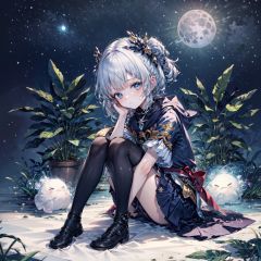 (masterpiece:1.2),(best quality:1.3),(ultra-detailed:1.2),(illustration:1.2),(Cinematic Lighting),star,moon,\n((1girl)),loli,full body,sitting,fetal position,\nbubble,fantastic,plant,girl in star,