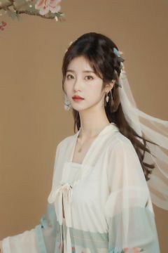 fine art parody,best quality,masterpiece,realistic,,HDR,UHD,gf_xy,1girl,chinese clothes, hanfu, jewelry, solo, earrings, hair ornament, flower, white background, hair bun, necklace, looking at viewer, long hair, hair flower, veil, double bun, upper body, simple background, brown hair, forehead mark, dress, mole,8k