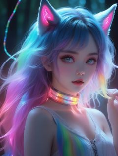 masterpiece, best quality, ultra high res, highly detailed, (psychedelic art:1.4), (woman, demon:1.3), (floating in dark mist:1.1), furry girl, anime furry women, ((best quality)), ((masterpiece)), ((realistic)), (detailed), portrait, close up, young female, RAW photo, uhd, dslr, rainbow hair, high quality, realistic, photo realistic, dreamlikeart, lens flare, upper body, looking at viewer, animal focus, furry, wolf fursuit, 1girl, cute, kawaii, lovely, fur, fur head, wolf head, narrow waist, wolf ears, black chocker, blush, paw, paw shoes, rainbow clothes, stunning gradient colors, no watermark signature, detailed background, woods, small lake with island, insanely detailed, visually stunning, wicked, hypnotic, alluring, cowboy shot, intricate, perferct shading, veil, beautiful, award-winning illustration, cosmic space background, ethereal atmosphere, ultra quality, beautiful girl, cosmical concept, rainbow strings, rainbow skin, rainbow bloody veins growing and intertwining out of the darkness, nailed wire, oozing thick blue blood, sharp neon, veins growing and pumping blood, vascular networks growing, green veins everywhere, yin and yang, glowing space, glowing stars, infinity symbol, dynamic pose, flying pose, glowing body, (rainbow aura:1.1), beautiful angel, clockwork, lightning, majestic, breathtaking